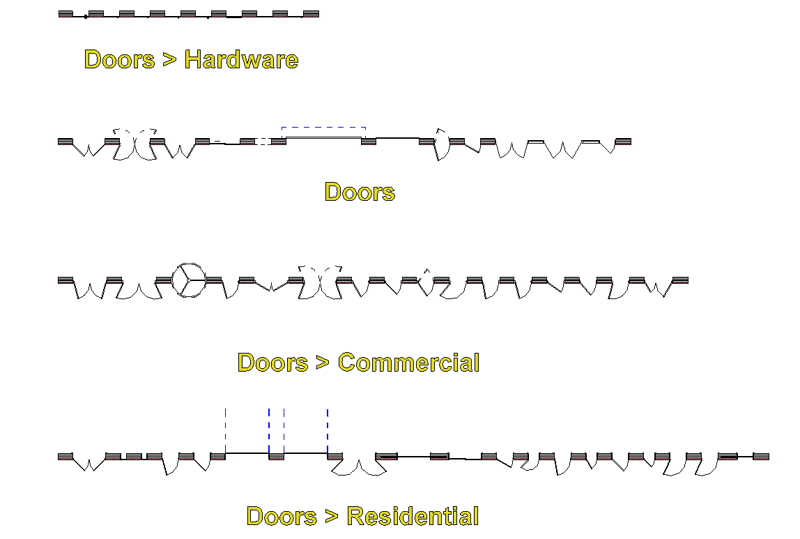 Another neat little thing you will find is that with some of the new door content (Residential & Commercial) when you have the detail level set to fine you will see the hardware (which is also the hardware in the new hardware folder).