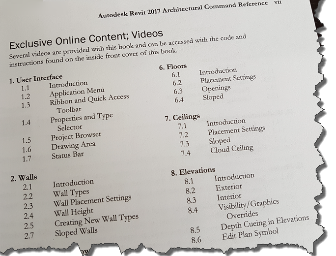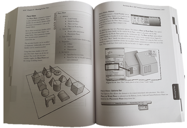 “The book is organized in the same way the Revit user interface is presented. Each tab of the ribbon is represented as a chapter…each button is represented in the book as it appears on the Ribbon from left to right.”