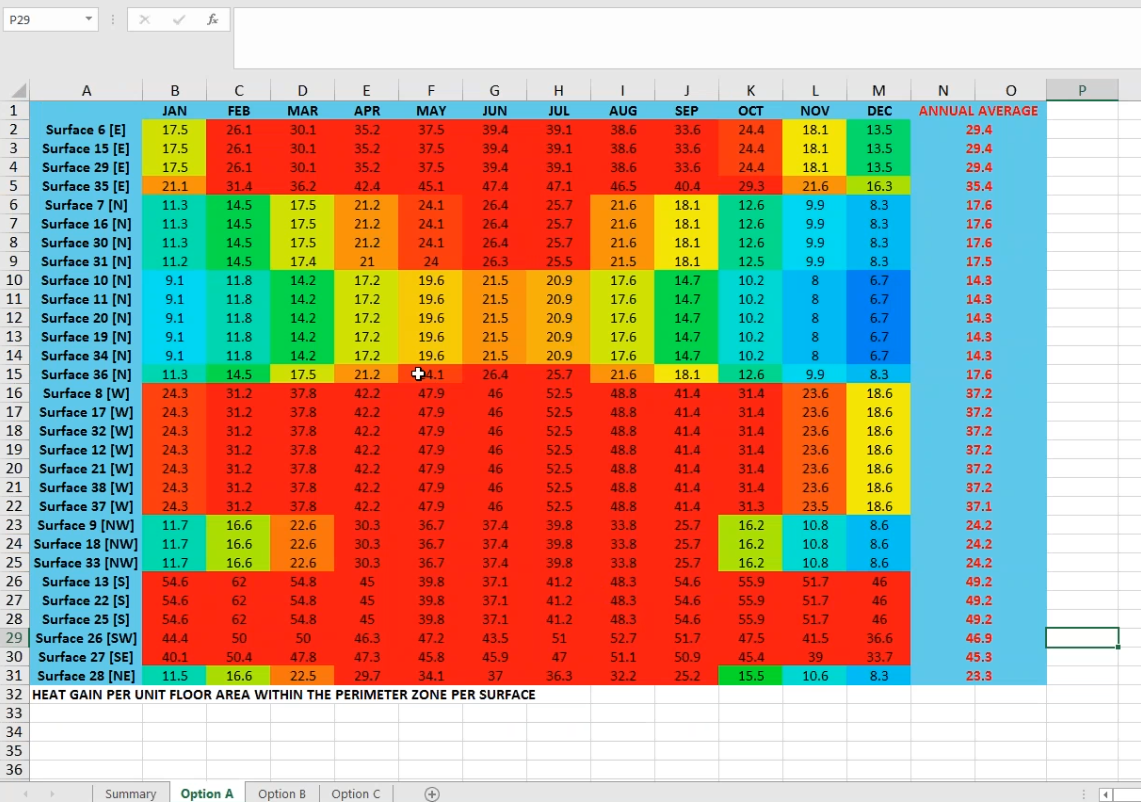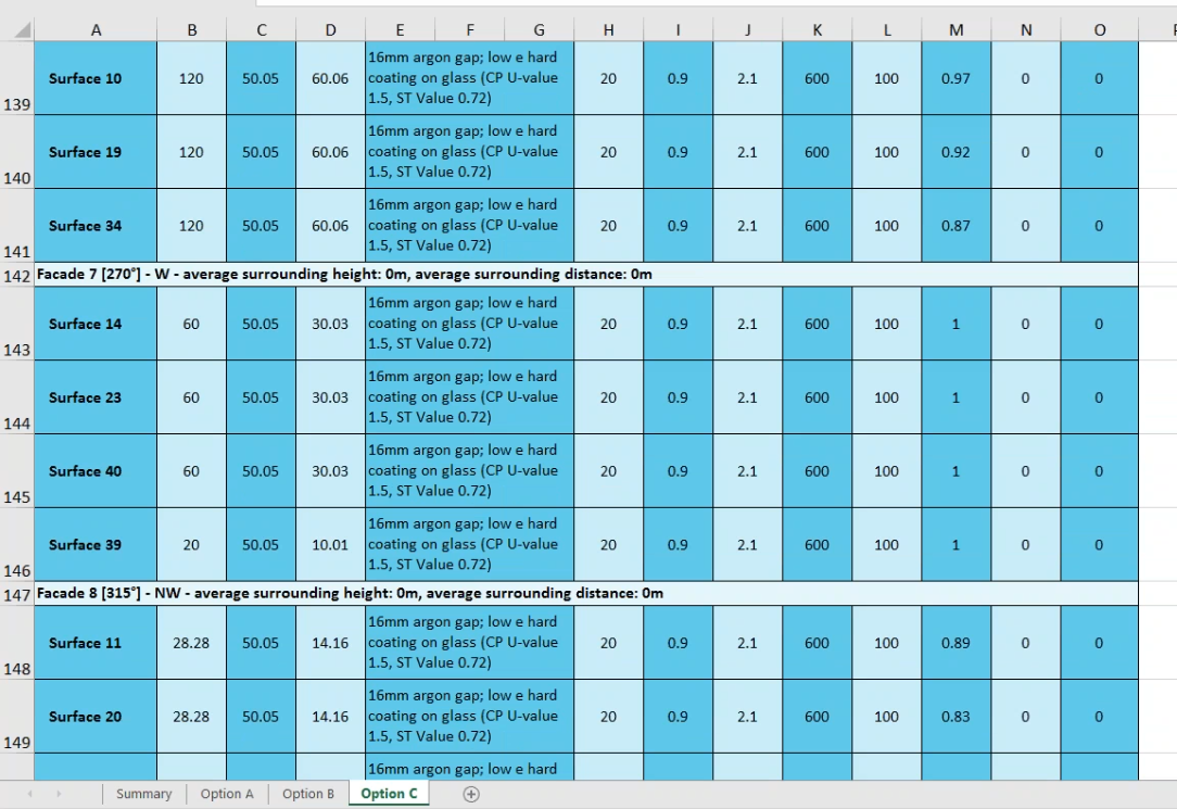 Once you have created your initial “Snapshot,” an excel spreadsheet is created. This spreadsheet will have some basic project information in it as well as the current state of your projects façade energy analysis.