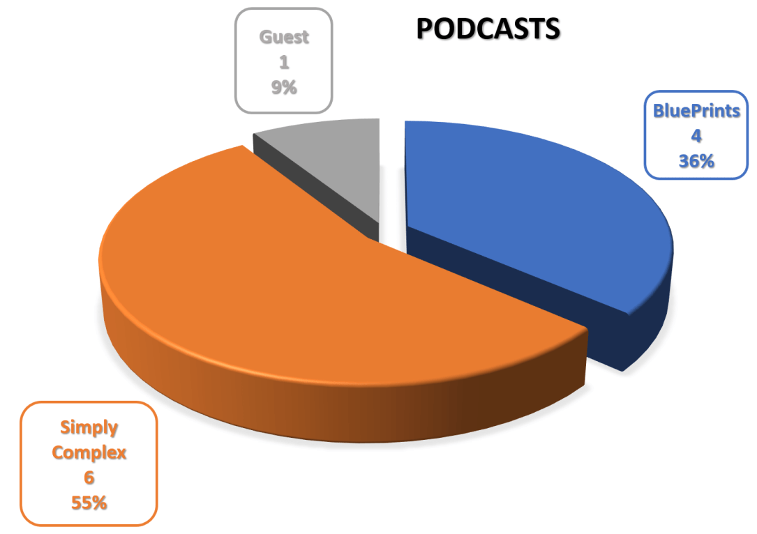 Podcasts Co-hosted: 10, six episodes of The Simplex Complex Podcast (AEC Conference Edition) and four episodes of BluePrints Podcast