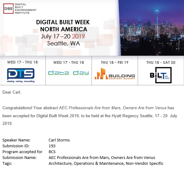 We are just about 4 weeks away from this year’s Digital Built Week North America #DBWNA in Seattle, WA June 14th – 20th, 2019.