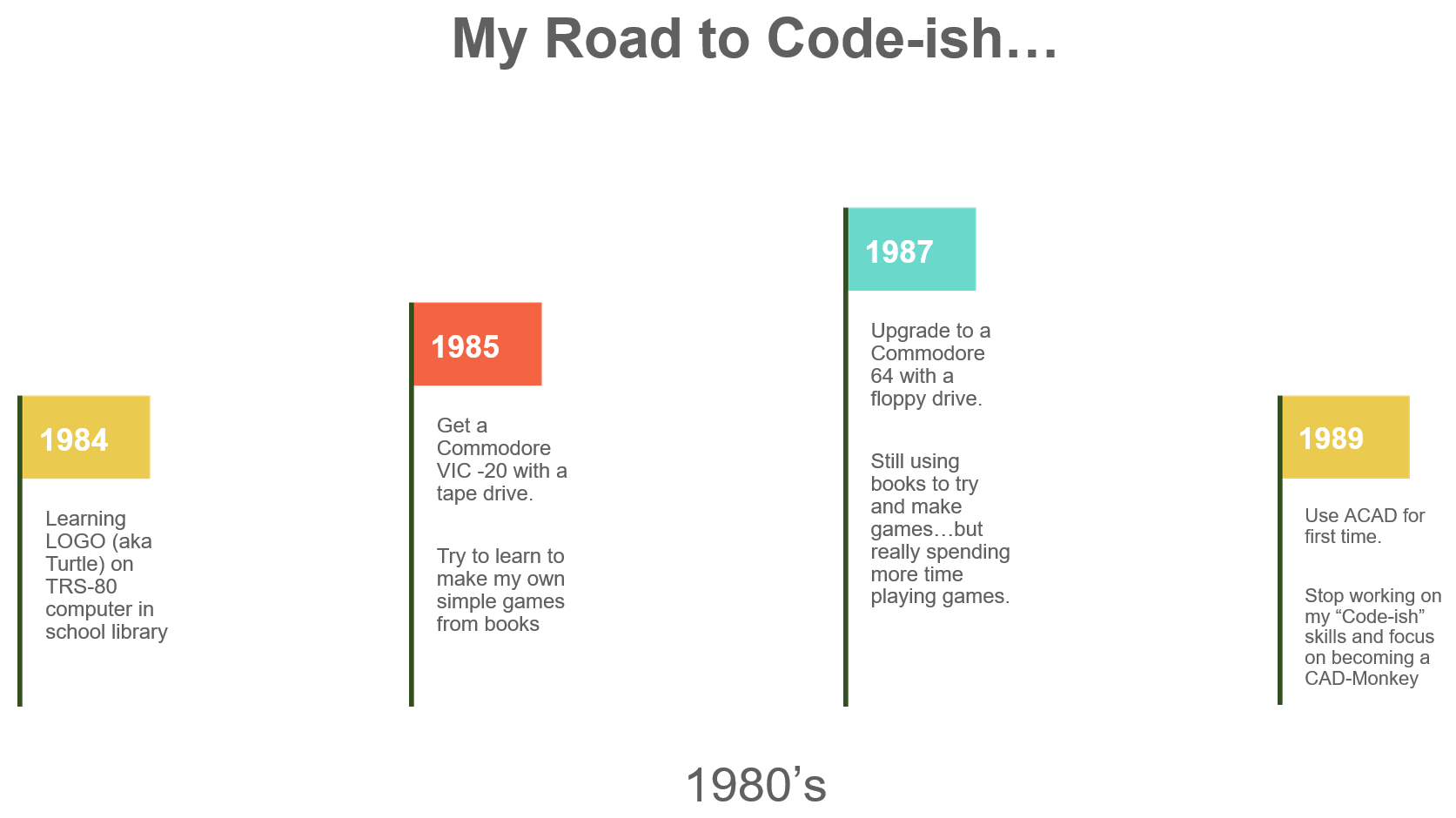 So if this post seems like deja vu, well it kind of is. I’ve been here and done this…learning to code, or code-ish anyway. I have dabbled in learning to code many times in my life, from the early days as a wee lad “playing” Logo on a TRS-80 or programming simple games on a Vic-20 with the help of books from the school library. Fast forward many years to when my interest in all thing coding started again with Dynamo, C#, a little Python and now JavaScript.