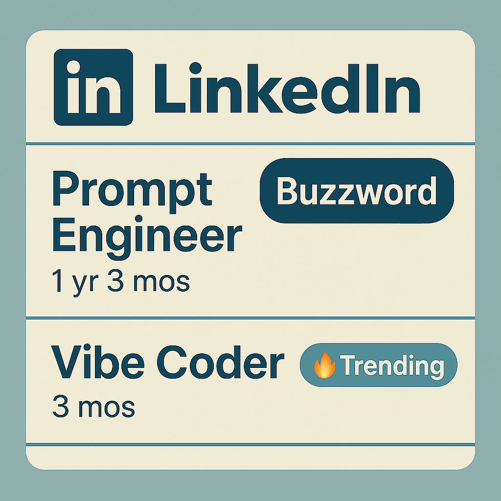 This is the new craft, not just writing code but shaping collaboration. It is less about telling the AI what to do, and more about showing it how you think. Just like “Prompt Engineer” became a buzzword on LinkedIn, “Vibe Coder” is starting to have its moment.