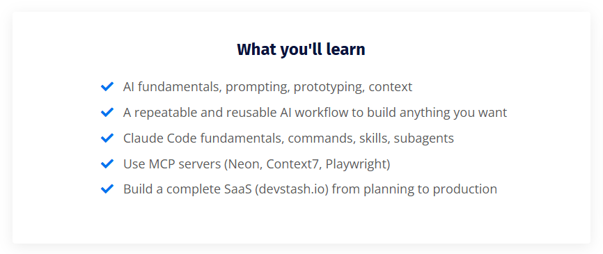 Times are changing. AI is everywhere, and it’s reshaping the entire landscape of software development — but a lot of bad practices have come with it. In this course, I share my own AI workflow. It’s simple, but it lets you stay the architect of your application and know exactly what’s going on feature by feature. You’ll learn everything from prototyping and planning to context management, MCPs, Claude Code skills and subagents — all while building a full-stack SaaS app that’s actually in production right now