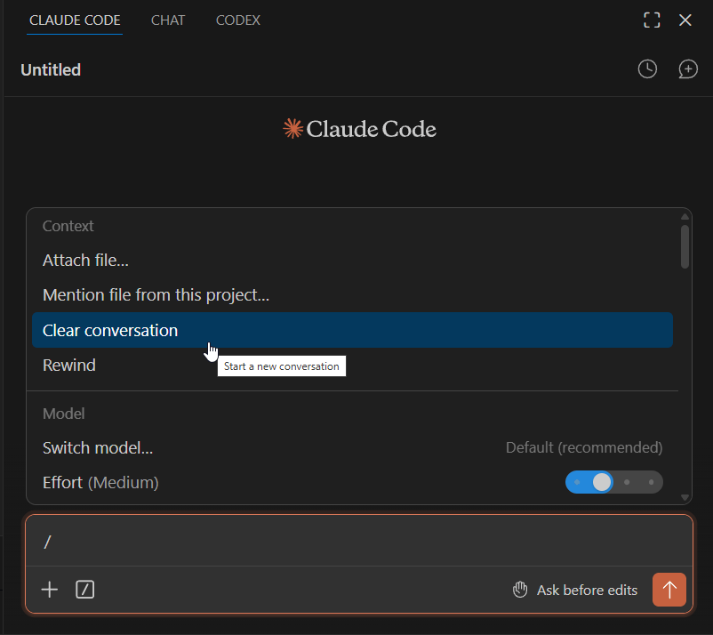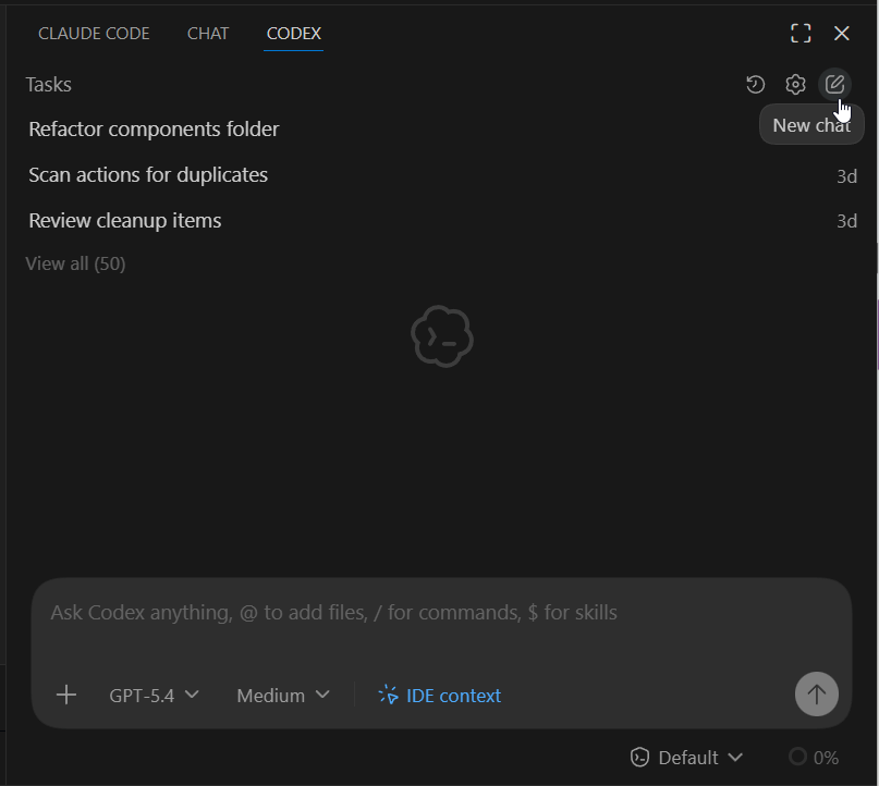 Clearing context is another small thing that ends up being important. In Claude Code, you can just run /clear and reset things. In Codex, at least in the VS Code extension, you’re starting a new chat using the UI. Same result, just a different habit you have to build.