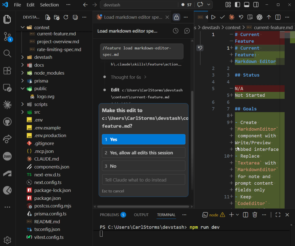 Brad starts things off in a pretty approachable way. There’s some early prototyping with tools like Lovable, Bolt, and v0, then a shift into working with Claude Code through the CLI, and eventually settling into using it directly inside VS Code.